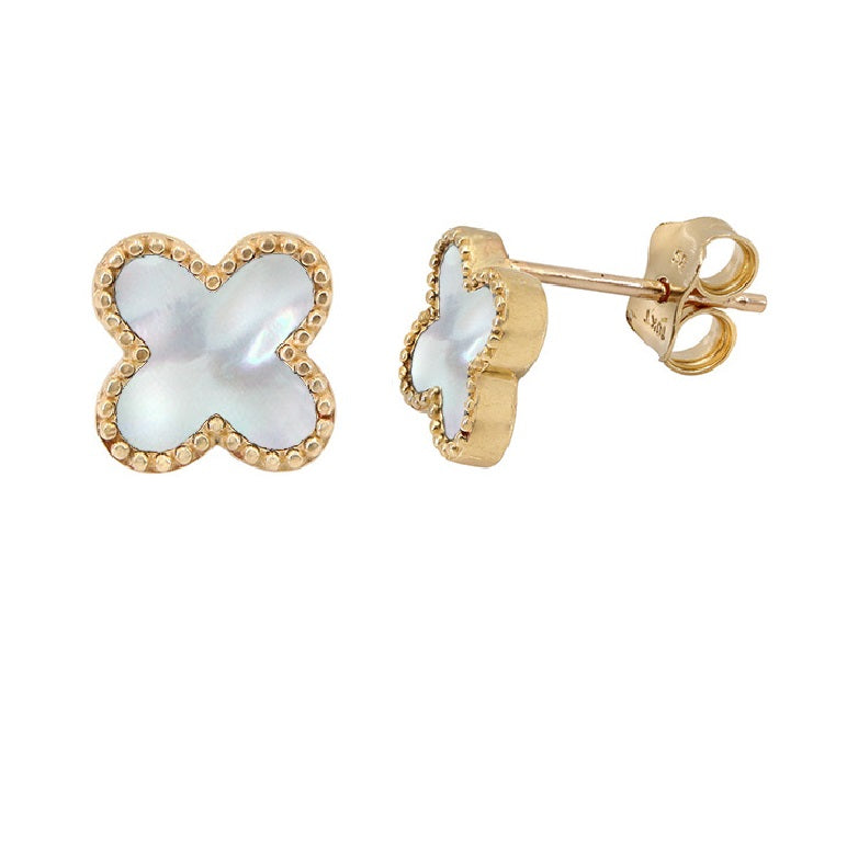 Exude timeless elegance with the Mother of Pearl Clover Studs, a luxurious blend of natural beauty and modern streetwear style. Crafted from premium 10KT gold, these four-leaf clover-shaped earrings feature a stunning mother-of-pearl inlay, radiating sophistication and good fortune. Perfect for adding a refined touch to any look. ✨🍀