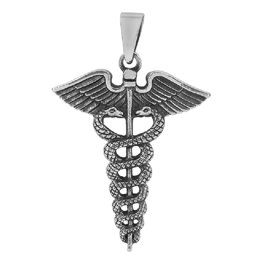 Sterling Silver Mystic Wings Caduceus Pendant
