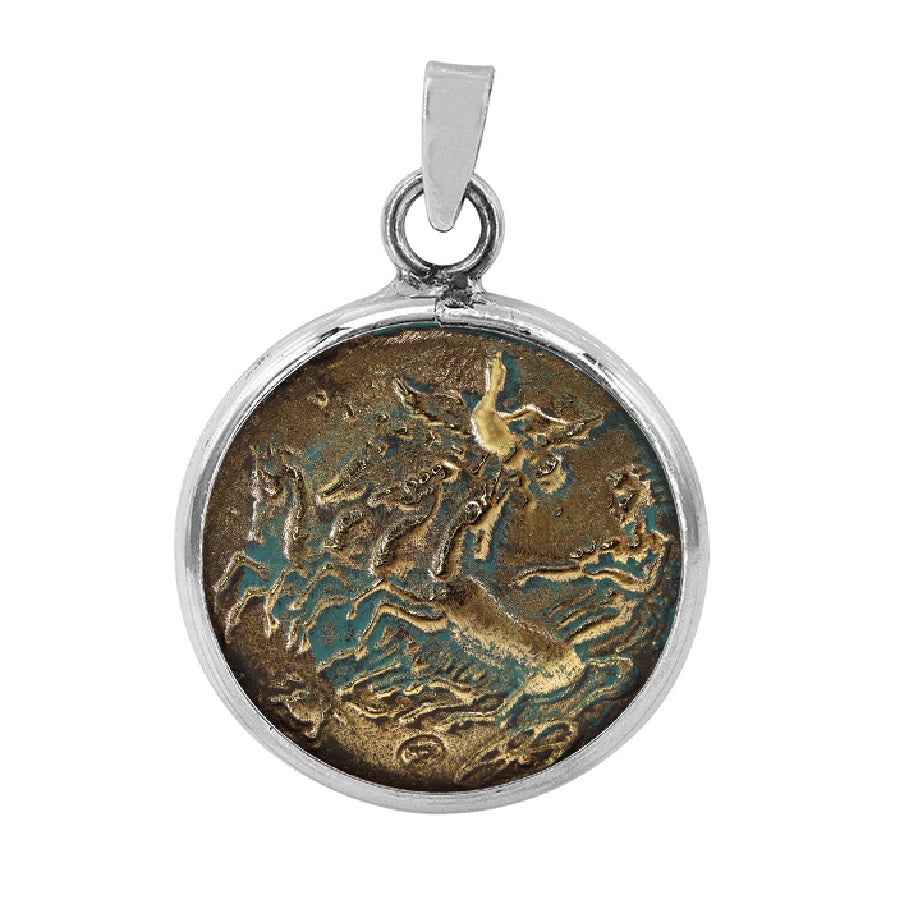 Sterling Silver with Bronze Medallion Coin Dragon Pendent