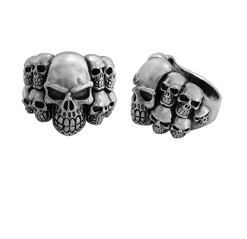 Unleash fearless energy with the Sterling Silver Eternal Horde Luxe Ring, a striking emblem of power and rebellion. Featuring an intricate arrangement of multiple skulls, this bold design exudes strength and individuality. Crafted from premium 925 sterling silver, it offers a rugged yet polished aesthetic that’s perfect for streetwear and edgy styles.